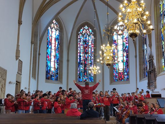 Zaterdag speelde het AYSO samen met Artiance in de kerk in Lengerich. Er werd samen gerepeteerd aan stukken die beide orkesten spelen, en we lieten elkaar onze mooiste stukken horen. De solozangeres van Artiance was indrukwekkend!